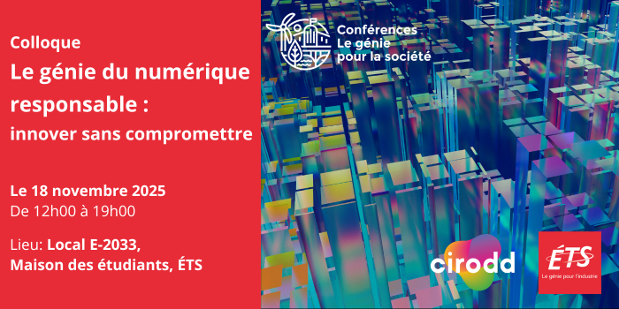 Le colloque Le génie du numérique responsable : innover sans compromettre est un événement d’un après-midi qui invite la communauté scientifique, le milieu de l’ingénierie et les acteurs socioéconomiques à réfléchir aux conditions d’un numérique porteur de sens, d’équité et de durabilité.