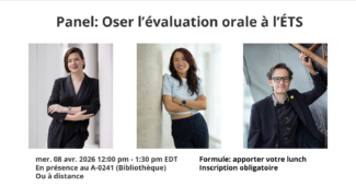 • Public visé : membres du personnel de recherche de l’ÉTS (assistant·e·s de recherche, associé·e·s de recherche, postdoctorant·e·s, auxiliaires d’enseignement)