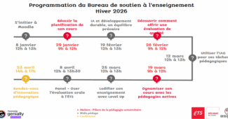 Nouveaux articles Programmation des activités du BSE – Hiver 2026 9 janvier 2026 Découvrez la programmation hivernale du Bureau de soutien à l’enseignement Le Bureau de soutien à...