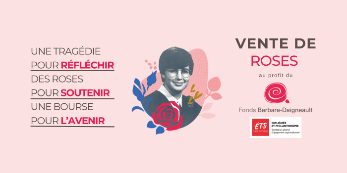 Les 3 et 4 décembre prochains, l’ÉTS tiendra sa vente annuelle de roses au profit du Fonds Barbara-Daigneault. Cette initiative s’inscrit dans les campagnes de financement annuelles de l’ÉTS visant à soutenir la réussite étudiante, tout en commémorant les événements tragiques du 6 décembre 1989 à Polytechnique.